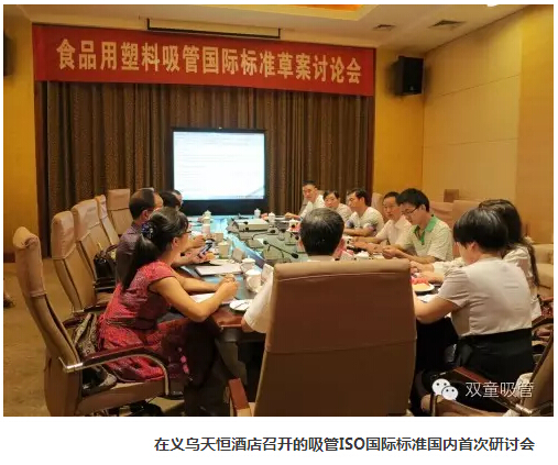 2012年7月24日,由國家塑料制品標準化技術(shù)委員會(huì )和“雙童”公司召集國內吸管行業(yè)的十多家生產(chǎn)企業(yè),在義烏市天恒酒店召開(kāi)ISO國際標準國內分組研討會(huì )。會(huì )上集中討論了由“雙童”提交的吸管ISO國際標準草案初稿,決定采用屬地原則的有利條件,在中國《聚丙烯飲用吸管》國家標準的基礎上進(jìn)行ISO國際標準的條文延伸和編輯,以最大程度上有利于中國吸管行業(yè)的健康發(fā)展。