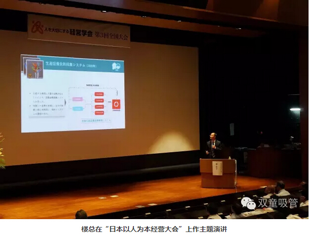昨天下午,來(lái)自日本同和集團的高山幸彥董事帶著(zhù)日文翻譯來(lái)“雙童”參觀(guān)交流。原來(lái)早在8月底,當家人樓總在“日本以人為本經(jīng)營(yíng)大會(huì )”演講時(shí),高山先生就對樓總的經(jīng)營(yíng)理念十分贊同,并在論壇后的聚餐上和樓總聊了十分鐘。此次趁著(zhù)到中國出差,他就專(zhuān)程來(lái)義烏拜訪(fǎng)樓總!