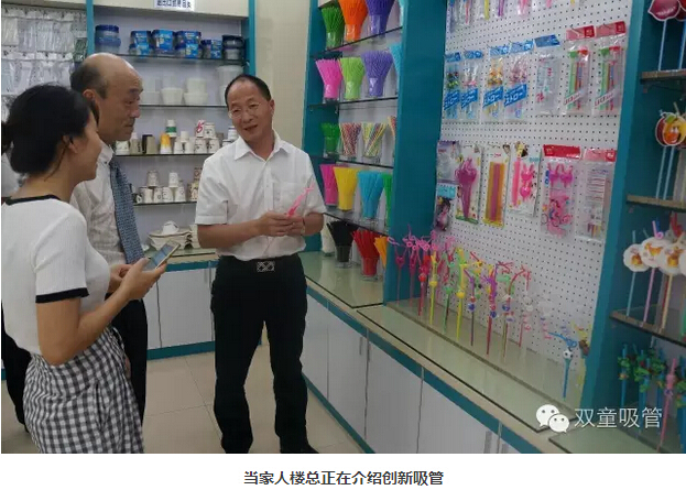 除了員工寢室,大家還參觀(guān)了“雙童”的樣品房。一進(jìn)門(mén),大家就被琳瑯滿(mǎn)目的各類(lèi)吸管所吸引,讓高山先生驚訝的是,原來(lái)一根小小的吸管也有這么多的功能可以開(kāi)發(fā),贊嘆“雙童”的創(chuàng )新力之強。