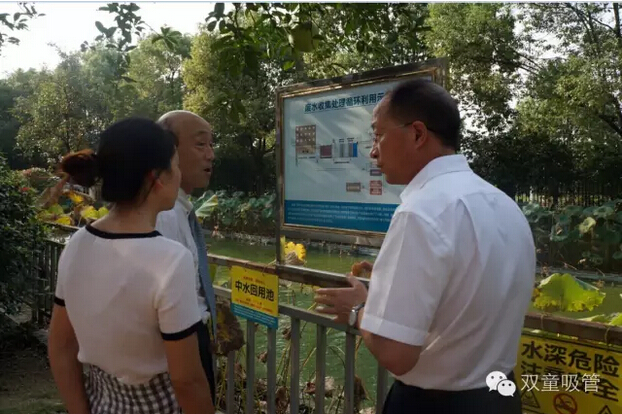 接著(zhù),大家來(lái)到了我們的中水回用池,當家人樓總和高山先生講解了我們“雙童”的廢水循環(huán)利用的系統和原理,之后又參觀(guān)了雨水收集處、垃圾分類(lèi)站等地。高山先生對“雙童”這種生態(tài)循環(huán)、為社會(huì )節約資源的做法點(diǎn)了一個(gè)大大的贊,這不僅僅有利于企業(yè),有利于社會(huì ),也是企業(yè)精細化管理的體現!連垃圾管理都能做得如此精細,更何況其它方面呢?