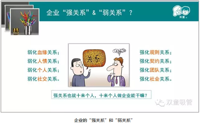在現代社會(huì )中,不少人把企業(yè)經(jīng)營(yíng)管理與人情社交關(guān)系掛上鉤,認為”朋友多好辦事“。而當家人樓總卻一直認為,朋友多并不一定好辦事,有時(shí)候甚至會(huì )阻礙你的發(fā)展!這話(huà)從何說(shuō)起呢?接下來(lái)吸管妞就向大家詳細闡釋一下當家人樓總在經(jīng)營(yíng)“雙童”過(guò)程中一直堅守的“企業(yè)強弱關(guān)系”理念吧!