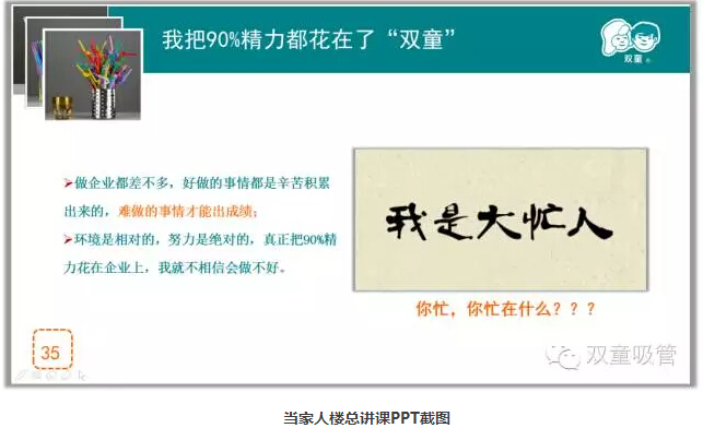 這樣一位企業(yè)主,在外界看來(lái),有些“一根筋”和“不通人情”,但在經(jīng)營(yíng)“雙童”二十多年的時(shí)間里,他不沽名釣譽(yù),不貪大求全,懂得了放棄,學(xué)會(huì )了享受寂寞和孤獨,并把“雙童”做到了全球吸管行業(yè)領(lǐng)導者!
