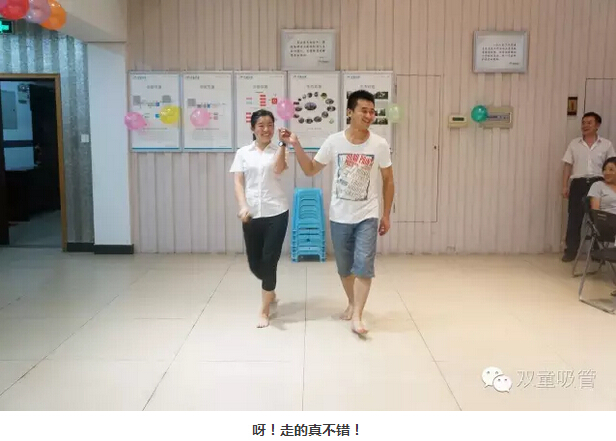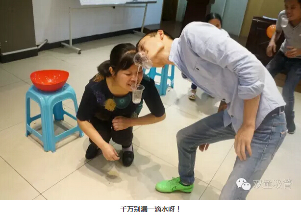 你以為這就結束了?還沒(méi)呢!接下來(lái)是重頭戲——“杯中傳情” 。員工們被分為兩隊,在相同的時(shí)間內用嘴叼杯子傳遞水,途中可不能用嘴哦!游戲好不好玩,看照片你就知道啦!