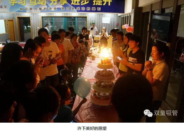 生日會(huì )到最后當然要請壽星們吃蛋糕啦!公司特地準備了五層的巨無(wú)霸蛋糕,真是讓人流口水呀!七八十號壽星圍在蛋糕邊唱歌許愿,那場(chǎng)面,溫馨極了!整個(gè)生日會(huì )的氣氛都是那么的愉快輕松,讓大家把所有的煩惱和不愉快都忘在九霄云外!最后,當然要祝福我們的壽星們,生日快樂(lè ),永遠幸福健康!