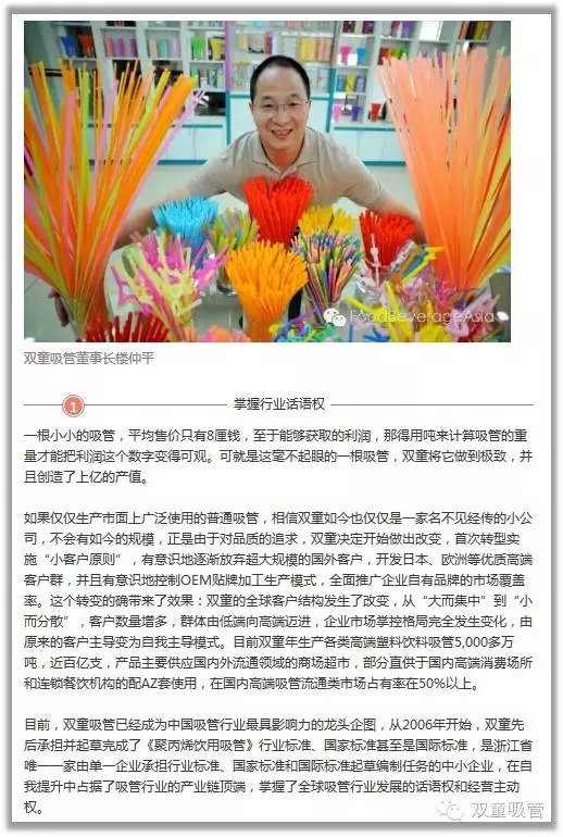 “雙童”一直以來(lái)都深受媒體關(guān)注。這不,10月26日 《亞洲食品與飲料》雜志發(fā)出了一篇關(guān)于“雙童”的報道!《亞洲食品與飲料》是一本食品與飲料行業(yè)的導航雜志哦,下面吸管妞就帶大家來(lái)看看吧!