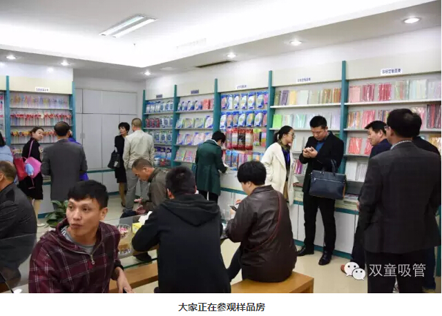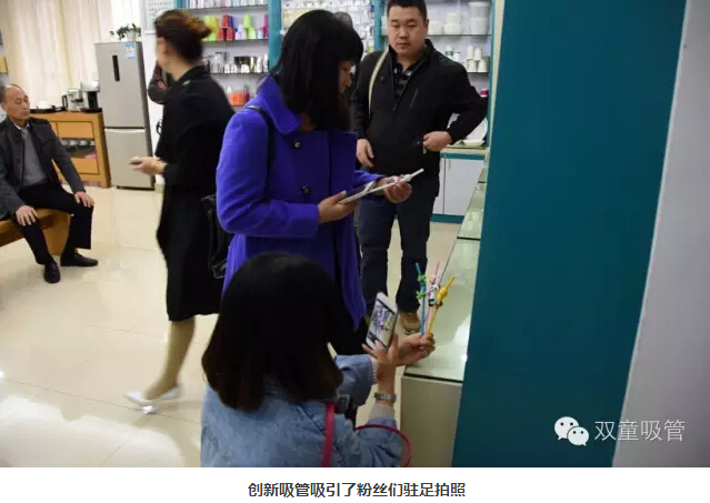 粉絲們都說(shuō)平時(shí)經(jīng)常在微信、微博等平臺上看到“雙童”,今天到了現場(chǎng)可得好好逛逛呀!說(shuō)走就走,妞帶大家參觀(guān)起了我們的花園式工廠(chǎng)!首先,大家來(lái)到了我們的樣品房,看到如此新穎的吸管,大家紛紛拿著(zhù)手機相機對它們進(jìn)行聚焦攝影!妞也向大家介紹了一系列創(chuàng )新吸管,讓他們驚訝的是,原來(lái)一根小小的吸管也可以有這么多的功能可以開(kāi)發(fā)!