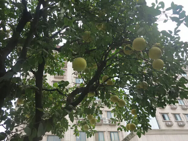 已經(jīng)轉黃的大柚子高高低低的掛滿(mǎn)了枝頭,和青綠的葉子應和著(zhù),煞是好看呢!從樹(shù)下往上看,像不像星星掛滿(mǎn)天的趕腳?吸管妞還發(fā)現,有幾個(gè)柚子長(cháng)得非常的低,真的可以用“唾手可得”來(lái)形容,可是……竟然沒(méi)有吃貨來(lái)摘?這是怎么回事呢?