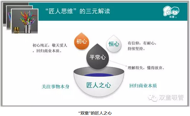 首先,當家人樓總分享了自己30多年的創(chuàng )業(yè)經(jīng)歷,在不斷失敗的教訓中,他選擇了把一根吸管做精、做細!通過(guò)二十多年積累,“雙童”初步形成了專(zhuān)注經(jīng)營(yíng)、創(chuàng )新進(jìn)取、綠色低碳、和諧共贏(yíng)和精細化管理的發(fā)展理念,“雙童”也發(fā)展的越來(lái)越好!而這些都離不開(kāi)“匠心”。社會(huì )發(fā)展也是如此,逐漸回歸“匠心”,回歸商業(yè)本質(zhì)!