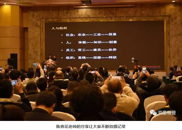 接下來(lái),趙曙明教授從人力資源的角度做了主題演講《共享經(jīng)濟下企業(yè)人力資源管理》。說(shuō)起趙曙明老師,他其實(shí)是陳春花教授的老師,也是現代管理學(xué)之父彼得·德魯克的學(xué)生,是中國德魯克管理理論的布道者!趙老師講到共享經(jīng)濟就是這種趨勢發(fā)展下的產(chǎn)物之一,并提出了共享經(jīng)濟在組織所面臨的三大挑戰和三大對策。企業(yè)做出改變迫在眉睫,管理不是“管理”人,而是“領(lǐng)導”人;管理的目標是充分發(fā)揮和利用每個(gè)人的優(yōu)勢和知識!