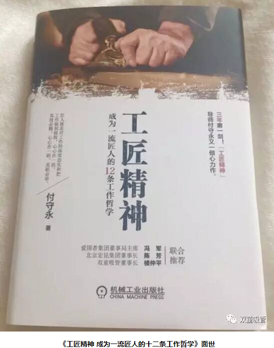 在國內,付守永先生是著(zhù)名的“工匠精神第一人”,他不僅寫(xiě)就了《工匠精神》、《路演大師》等暢銷(xiāo)著(zhù)作,且多年來(lái)一直致力于傳播工匠精神,為企業(yè)界帶來(lái)了實(shí)實(shí)在在的經(jīng)營(yíng)指導和管理方略。近日,付守永先生的新書(shū)《工匠精神 成為一流匠人的十二條工作哲學(xué)》已經(jīng)面世!而在此書(shū)的開(kāi)頭,就是付守永先生邀請當家人樓總為此書(shū)寫(xiě)的序文!看來(lái)付守永先生對“雙童”的”工匠精神“也相當認可。想看看當家人樓總是如何詮釋”雙童“匠心的嗎?下面妞帶大家來(lái)看看!