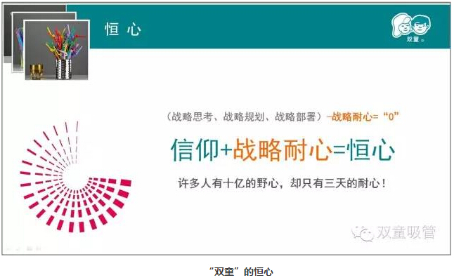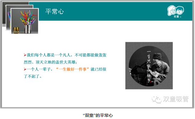 這家一次性筷子工廠(chǎng)和日本企業(yè)的綠色環(huán)保經(jīng)營(yíng)模式一直影響了我對企業(yè)和產(chǎn)品的經(jīng)營(yíng)思維,認知到通過(guò)堅持和創(chuàng )新完全可以改變企業(yè)的不變真理,從而影響了“雙童”在后續發(fā)展過(guò)程中始終堅守在“一根吸管”上,并通過(guò)專(zhuān)注不輟、精進(jìn)創(chuàng )新、用心經(jīng)營(yíng)而形成了獨具特色的“雙童工匠思維”,使“雙童”逐漸擺脫了薄利多銷(xiāo)的粗放經(jīng)營(yíng),逐步形成了精細化管理、生態(tài)環(huán)保、與員工共成長(cháng)的可持續發(fā)展道路,從而徹底改變了世人對吸管行業(yè)的低、小、散、弱的傳統認知。下面我就“雙童”二十多年逐漸形成的“匠人思維”做一個(gè)簡(jiǎn)單的總結和回顧: