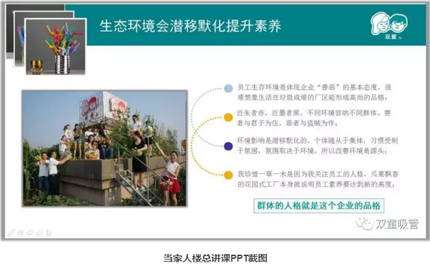 透過(guò)“廁所文化”反映出來(lái)的,其實(shí)是一個(gè)企業(yè)提升員工素質(zhì)、追求極致品質(zhì)的核心!唯有先給員工提供優(yōu)質(zhì)硬件,通過(guò)環(huán)境潛移默化地影響員工的意識形態(tài),讓員工也從“三星級”向“五星級”跨越,這樣才能生產(chǎn)出優(yōu)質(zhì)的產(chǎn)品!看到這里,各位老板們應該明白為何“雙童”要讓員工們使用五星級廁所了吧!