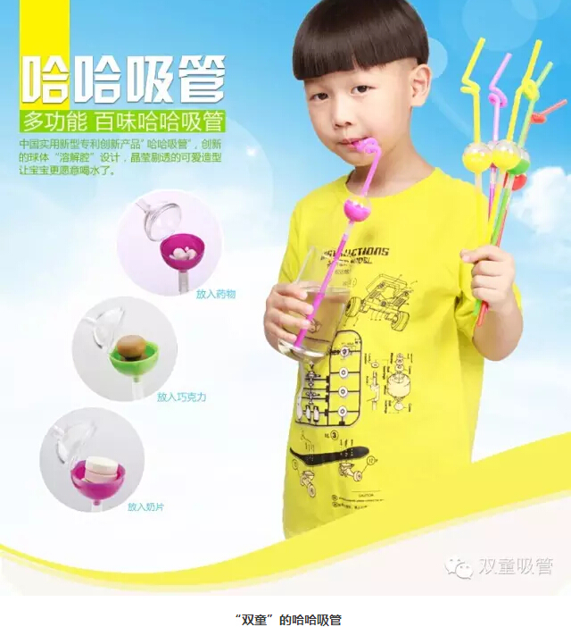 寶寶怕吃藥,困擾著(zhù)很多父母。樓仲平發(fā)明了“哈哈吸管”,在吸管中間設計一個(gè)有開(kāi)合功能的圓球,可以加入藥粉和冰糖。這樣,寶寶在“誘騙”之下,吸入糖水的同時(shí)也順利吃了藥。同樣有“藥用”功能的,還有幫助老人和病人吸飲不會(huì )回流的省力吸管。