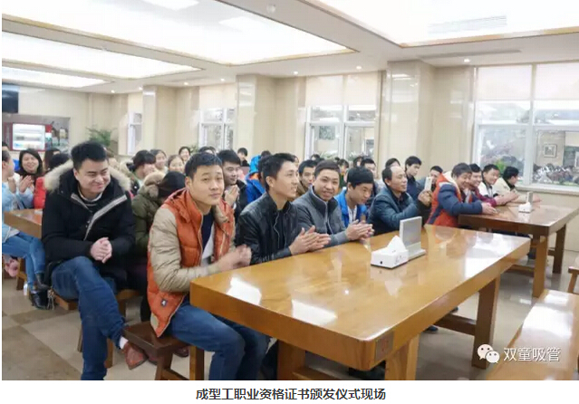 重磅好消息!近日,“雙童”收到了近百位員工們考取的吸管成型工職業(yè)資格證書(shū)!這不,今天我們在員工餐廳舉辦了成型工職業(yè)資格證書(shū)頒發(fā)儀式!瞧!員工們一個(gè)個(gè)喜笑顏開(kāi)的樣子,真讓人高興呀!