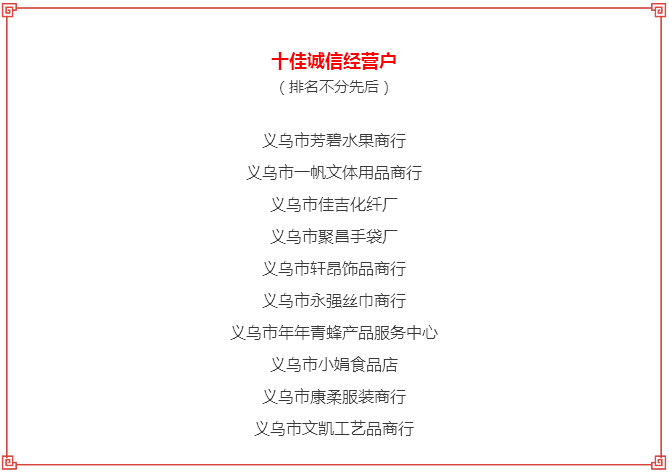 1月9日上午,義烏市2017年“誠信日”暨“義烏中國小商品城”品牌授權儀式在幸福湖隆重舉行!為褒揚守信主體、營(yíng)造誠信氛圍,當天還舉行了首屆守信“紅名單”發(fā)布儀式,為“十佳誠信企業(yè)”、“十佳誠信外商”、“十佳誠信電商”和“十佳誠信經(jīng)營(yíng)戶(hù)”授牌。“雙童”也名列其中,成為“十佳誠信企業(yè)”之一!