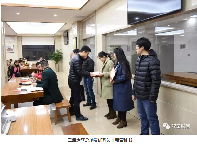 又到年底,我們“雙童”也要放假啦!在放假前,我們準備了豐盛的年終大聚餐!在年底員工聚餐前,當然要先開(kāi)個(gè)員工年終大會(huì ),好好表彰一下過(guò)去一年來(lái)大家的辛勤努力!這不,下午四點(diǎn),我們舉行了春節前的最后一次集體員工大會(huì )。