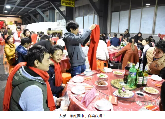 領(lǐng)完獎,年終聚餐正式開(kāi)始啦!每人一張入場(chǎng)抽獎券和一條紅紅火火的圍巾,真是喜氣洋洋呀!好家伙,50多桌酒席一字排開(kāi),500人的大聚餐,每一位員工臉上都洋溢著(zhù)笑容!大家都辛苦一年了,跟日日夜夜一起工作生活的小伙伴們坐下來(lái),好好吃一頓,喝幾杯,鬧一鬧!