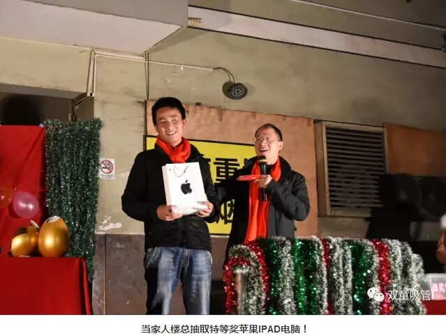 如此熱鬧的年會(huì )抽獎當然也不能少!我們的當家人樓總、二當家李總等領(lǐng)導輪番上臺抽獎!哎呀!可得看好了自己的抽獎券,千萬(wàn)別錯過(guò)自己的號碼呀!年貨大禮包、26寸精致拉桿箱、高大上的華為榮耀手機、蘋(píng)果IPAD電腦……獎品真是拿到手軟,大獎究竟花落誰(shuí)家,一起來(lái)看看吧!