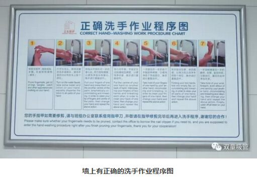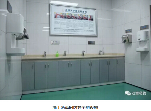 4、整理完衣物后,來(lái)到洗手消毒間,進(jìn)行洗手、烘干、消毒。