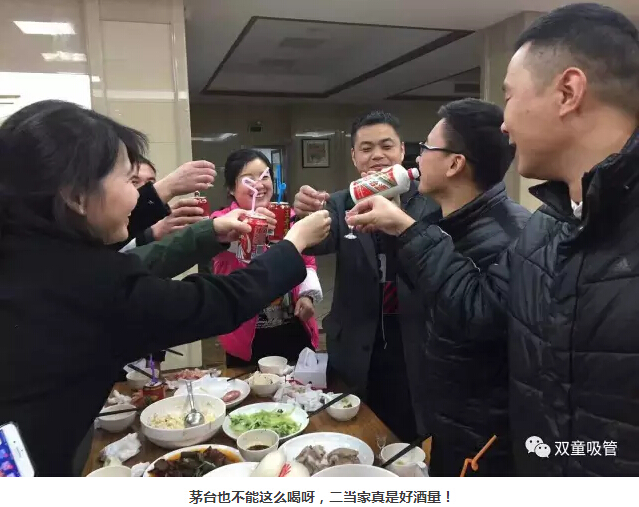 席間也少不了互相敬酒的環(huán)節啦!大家拿著(zhù)酒杯不斷的干杯敬酒,感謝同事們一年下來(lái)的配合幫助。而最近剛剛喜得小公主的李總更是人逢喜事精神爽,直接拿茅臺干上了,多霸氣!可得給我們樓總悠著(zhù)點(diǎn)喲!