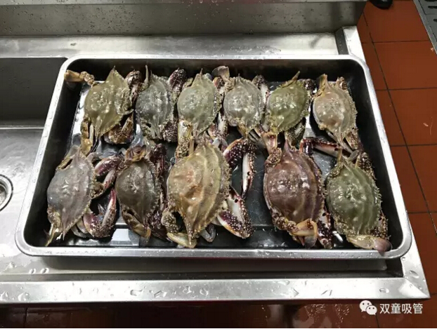 二、將冰凍的野生梭子蟹自然解凍。