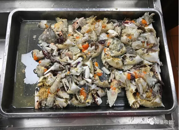 九、掰開(kāi)后的螃蟹千萬(wàn)不要再清洗了,包括黑乎乎的膏體千萬(wàn)不要洗清哦!