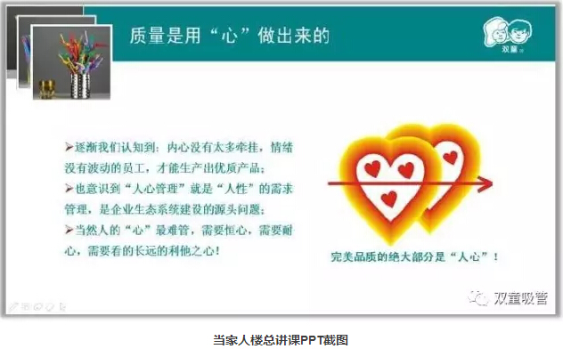 “雙童”逐漸認知到:“家”是員工最大的牽掛,只有改變員工才能改變產(chǎn)品從而改變企業(yè)。“人心”最難管,員工沒(méi)有了牽掛,才能全身心投入到工作當中,才能做出更加完美精細的產(chǎn)品,人心管理就是企業(yè)生態(tài)系統的改善。從2005年9月開(kāi)始,“雙童”明確把“家文化”作為員工管理的著(zhù)力點(diǎn),以“小家”形成“大家”,凝聚團隊“人心”!