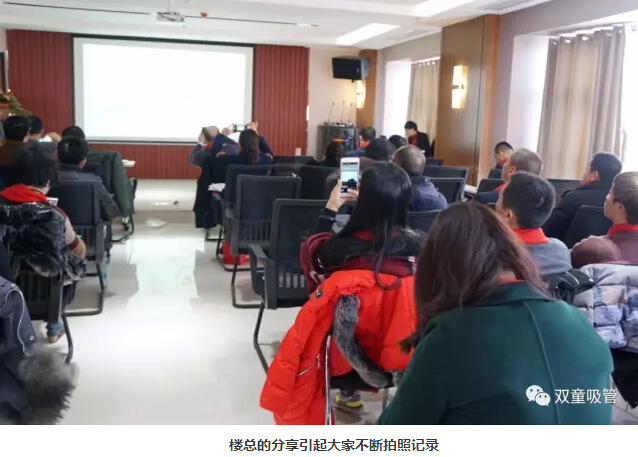 課程最后的三十分鐘是互動(dòng)環(huán)節,企業(yè)主們對“雙童”的學(xué)習制度十分感興趣,“雙童”是如何讓員工們持續不斷地進(jìn)行學(xué)習?樓總也和企業(yè)主們進(jìn)行了分享:“‘雙童’每周一和每周三都會(huì )組織學(xué)習會(huì ),我們也準備好了“胡蘿卜”和“大棒”。對積極參加的員工進(jìn)行獎勵,也對破壞制度的員工舉起“大棒”。學(xué)習面前人人平等,無(wú)論是掃地阿姨還是門(mén)衛大叔都參與其中,讓全廠(chǎng)員工都參與其中!”聽(tīng)到這里,企業(yè)主們對這樣的學(xué)習制度都十分認同!