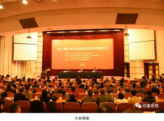 2月16日上午,“2017浙江省企業(yè)家新春經(jīng)濟形勢報告會(huì )”在杭舉行,吸管妞和吸管君也趕赴杭州參與了此次會(huì )議。原國家工信部部長(cháng)、全國政協(xié)常委李毅中、浙江省副省長(cháng)馮飛、省政協(xié)副主席兼省總工會(huì )主席張蔚文等出席了本次活動(dòng)。