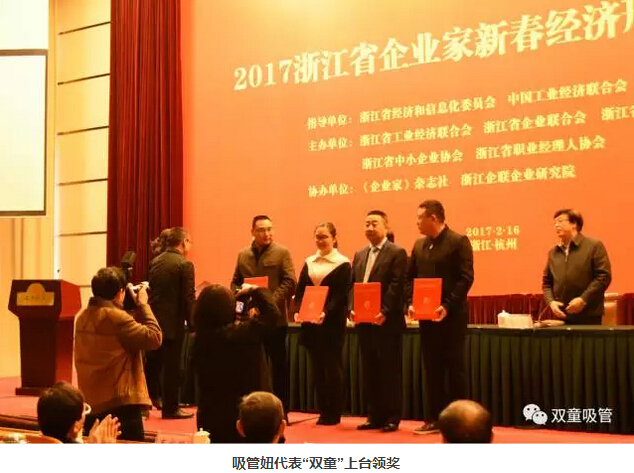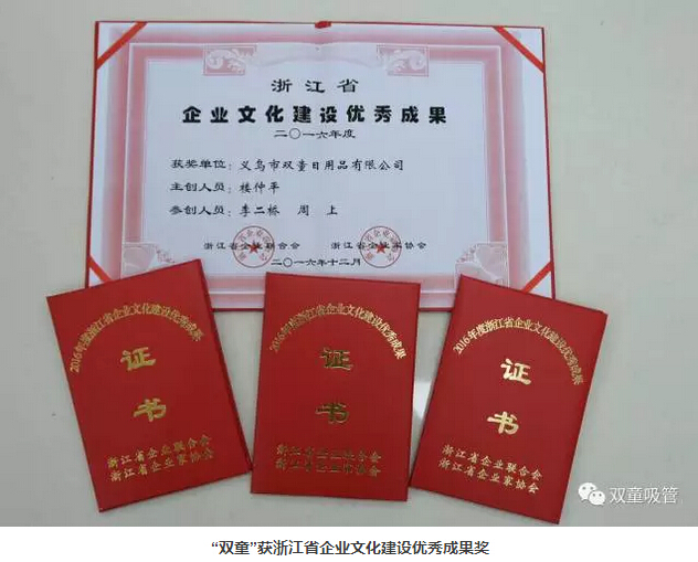 大會(huì )上頒發(fā)了浙江省2016年度“企業(yè)文化建設優(yōu)秀成果”獎,有五家企業(yè)獲得此項殊榮,“雙童”作為義烏唯一一家獲獎企業(yè)也名列其中呢!