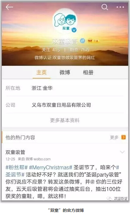 在信息化應用上,受當家人樓總的影響,“雙童”一直走在中小企業(yè)的前沿。早在新浪微博剛開(kāi)放之初,我們就開(kāi)始了新媒體的應用宣傳,除了微博,還開(kāi)辟了微信進(jìn)行傳播,通過(guò)“講故事”的方式傳播“雙童”文化,同時(shí)命名了“吸管妞”、“吸管君”這些擬人化的稱(chēng)呼,建立了“雙童”粉絲社群,拉近了與粉絲的距離!