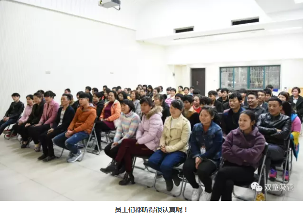 這不,二當家李二橋和副總吳小彬在對新員工們表示了歡迎后,介紹了“雙童”的企業(yè)文化和基本情況。從“雙童”的廠(chǎng)房變遷、發(fā)展歷程等方面詳細地介紹了“雙童”。這可滿(mǎn)足了新員工們的好奇心,感受到“雙童”這個(gè)大家庭的溫暖,大家工作起來(lái)都動(dòng)力十足了呢!