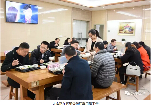 接下來(lái),大家一起來(lái)到了五星級員工餐廳,和員工們一起體驗我們的員工餐。餐桌上的用餐提示語(yǔ)、墻上的相框、餐桌上的編號銅牌……隨處可見(jiàn)的優(yōu)質(zhì)細節都讓精英們稱(chēng)贊不已!當家人常說(shuō)給員工用的東西一定要是最好的,在提升生活環(huán)境的同時(shí),潛移默化地改變員工的素質(zhì)和質(zhì)量意識從而影響員工生產(chǎn)出更好的產(chǎn)品,大家對這樣精細化的就餐環(huán)境都點(diǎn)了個(gè)大大的贊!