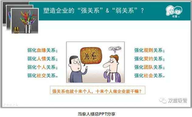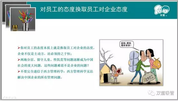 “家”是員工最大的牽掛,員工沒(méi)了牽掛,才能全身心投入到工作當中,人心管理就是企業(yè)生態(tài)系統的改善?!半p童”明確把“家文化”作為員工管理的著(zhù)力點(diǎn),以“小家”形成“大家”,凝聚團隊“人心”!同時(shí)“家文化”背后也要有詳盡的制度支撐,塑造企業(yè)的“強關(guān)系”和“弱關(guān)系”!