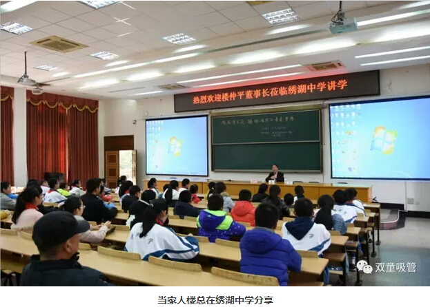 沒(méi)想到樓總的分享在繡湖中學(xué)掀起了一股熱潮,這不,幾位繡湖中學(xué)的學(xué)子專(zhuān)門(mén)以《雞毛飛上天》做了專(zhuān)題的社會(huì )實(shí)踐報告,榮獲了學(xué)校的第三名,并將代表學(xué)校參加市里的比賽呢!為此,上周六,繡湖中學(xué)的幾位參賽學(xué)子及家長(cháng)代表來(lái)到“雙童”,和當家人樓總進(jìn)行深入交流!