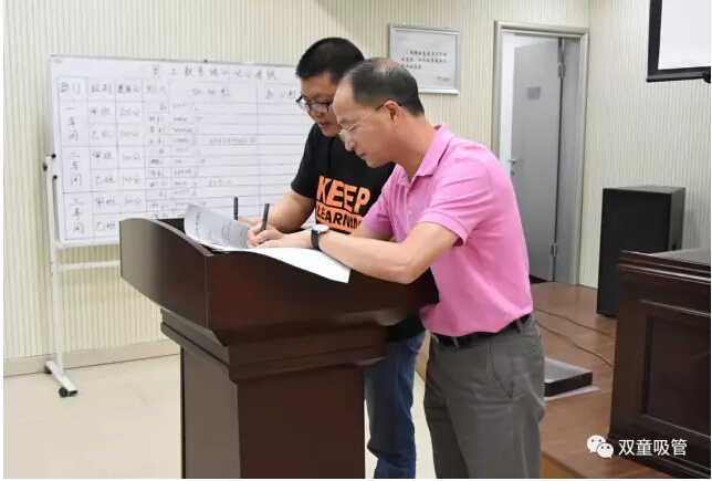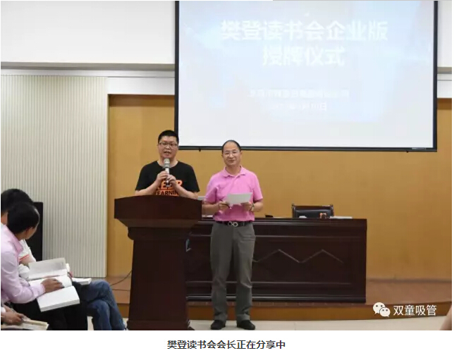 下面就是激動(dòng)人心的簽約授牌儀式啦!樊登讀書(shū)會(huì )王旭飛會(huì )長(cháng)以及“雙童”樓仲平現場(chǎng)進(jìn)行樊登讀書(shū)會(huì )企業(yè)版的簽約授牌儀式。經(jīng)過(guò)這次儀式,樊登讀書(shū)會(huì )企業(yè)版正式入駐雙童吸管!“雙童”樓仲平也現場(chǎng)祝福樊登讀書(shū)會(huì )企業(yè)版的入駐,給“雙童”這個(gè)學(xué)習型組織插上飛翔的翅膀,在今后的企業(yè)學(xué)習過(guò)程中可以事半功倍,更高效、更快樂(lè )地學(xué)習!