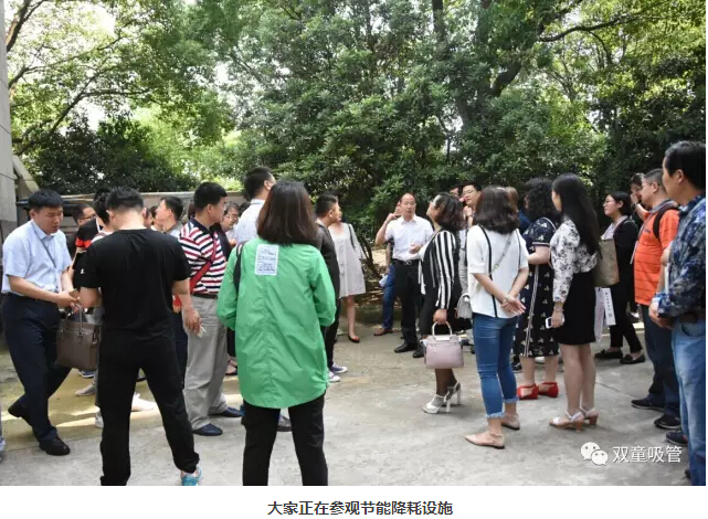 參觀(guān)的第一站是我們的節能降耗系統!“雙童”樓仲平向大家詳盡地介紹了廢水回用系統、雨水收集系統、垃圾分類(lèi)系統,光光是雨水收集系統,每年就能為“雙童”節約100萬(wàn)水費呢!