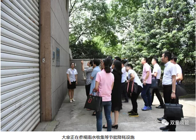 首先,吸管妞帶大家參觀(guān)起了“雙童”的節能降耗措施,參觀(guān)了雨水收集處、垃圾分類(lèi)站等地,和大家講解了“雙童”的廢水循環(huán)利用以及雨水收集系統和原理。老師和同學(xué)們對“雙童”這種生態(tài)循環(huán)、節約資源的做法十分認可,更對樓總多年前能有這樣的環(huán)保理念十分敬佩!