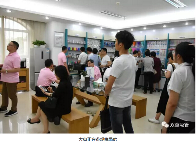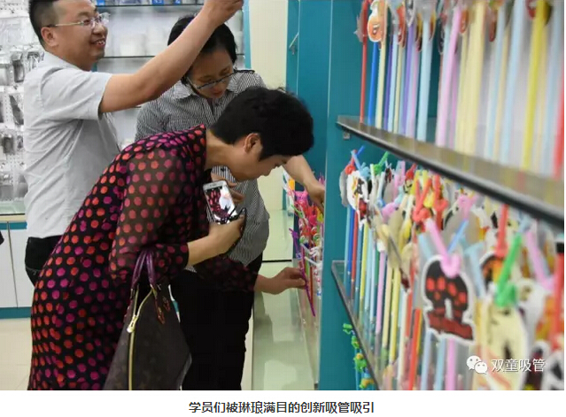 移步樣品房,大家都被琳瑯滿(mǎn)目的各類(lèi)吸管所吸引,尤其是各類(lèi)功能情趣的創(chuàng )新吸管,它顛覆了大家腦海里幾分幾厘的普通吸管,而是轉變?yōu)閹讐K錢(qián)一支的高端產(chǎn)品,更是讓每個(gè)人都嘖嘖稱(chēng)奇,贊嘆“雙童”的創(chuàng )新力之強!