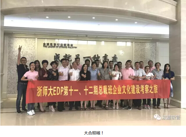 近日,浙江師范大學(xué)王水嫩教授帶領(lǐng)浙師大EDP總裁班的學(xué)員們到“雙童”參觀(guān)交流,了解“雙童”的企業(yè)文化。