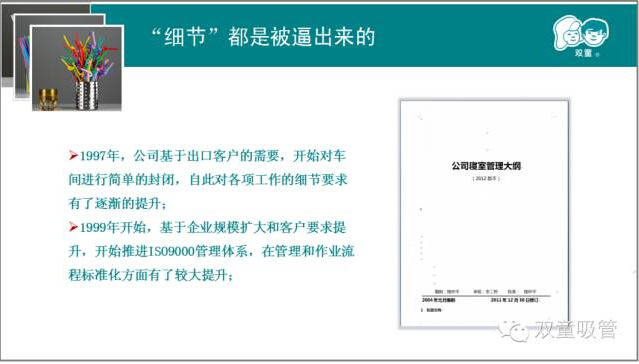 第二章,“雙童”樓仲平結合我們“雙童”自身的真實(shí)案例,來(lái)說(shuō)明實(shí)施精細化管理對產(chǎn)品質(zhì)量的重要性!通過(guò)和日本客戶(hù)的合作,我們一次次地提升,一次次地逼著(zhù)自己做更高的要求和改變,以此來(lái)達到客戶(hù)的需求,更通過(guò)這些舉措,慢慢地改變我們自己的產(chǎn)品質(zhì)量和員工素質(zhì)!