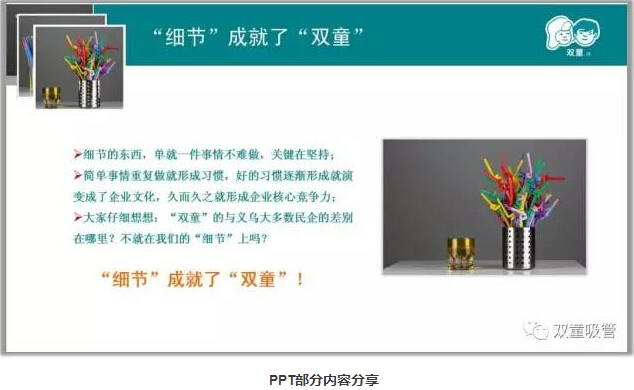學(xué)習會(huì )進(jìn)行到最后,“雙童”樓仲平說(shuō)道:“其實(shí)形成好的習慣并不難,細節的東西,單就一件事情不難做,關(guān)鍵在堅持;簡(jiǎn)單事情重復做就形成習慣,好的習慣逐漸形成就演變成了企業(yè)文化,久而久之就形成企業(yè)核心競爭力。其實(shí)是‘細節’成就了‘雙童’!”