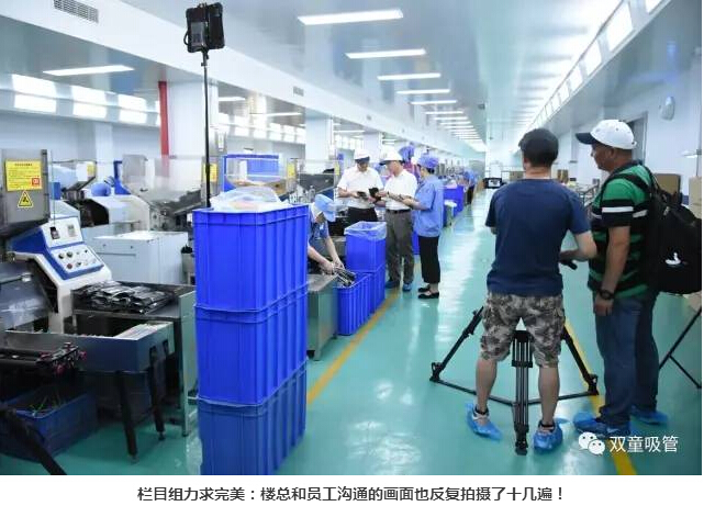 這不,《中國影像方志》欄目組也專(zhuān)程來(lái)到“雙童”,在“雙童”的生產(chǎn)車(chē)間、員工餐廳、行政辦公區等地點(diǎn)進(jìn)行全面拍攝。此次拍攝長(cháng)達一天,節目組也深入車(chē)間了解了“雙童吸管”的生產(chǎn)過(guò)程,“雙童”的員工關(guān)懷及經(jīng)營(yíng)文化理念等方面。