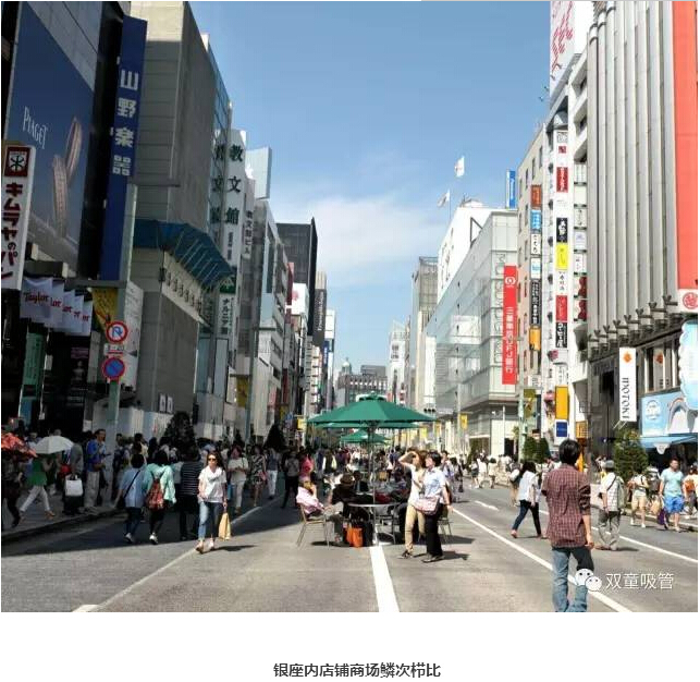 如今的銀座分一丁目到八丁目,即所謂"銀座八町",街道兩旁坐落著(zhù)4家大百貨公司、500家特產(chǎn)商店、2000家飯店、1600多家酒吧和歌舞廳。銀座兩側人行道寬闊,周日又禁機動(dòng)車(chē)通行,故有“步行者的天堂”之稱(chēng)。銀座的路口和紅綠燈可謂是十步一個(gè),街兩邊雖然沒(méi)有交警,沒(méi)有引導員,但每個(gè)人都十分自覺(jué)地紅燈停綠燈行,大巴司機在送客人時(shí)候也非常注意時(shí)間,千叮嚀萬(wàn)囑咐:一定要速度上下車(chē),此地不宜久停,會(huì )影響交通!