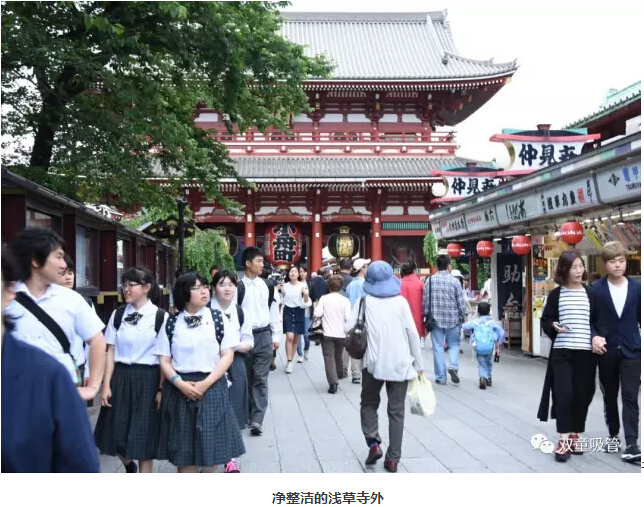 為了了解日本民族文化,我們自然也要去一次東京都內最古老的寺廟——淺草寺。前來(lái)朝拜的香客也算是人山人海。就在這樣一個(gè)游人如織的地方,你只要細心往地面上觀(guān)察,就會(huì )發(fā)現依舊沒(méi)有人扔垃圾。雖然滿(mǎn)耳聽(tīng)到的很多是中國話(huà),但是國內經(jīng)常能見(jiàn)到的隨手亂扔垃圾、隨地亂吐痰現象卻不見(jiàn)了。群體意識的重要性在此情此景下凸顯無(wú)疑,這讓“雙童”游學(xué)團感慨萬(wàn)千:為什么我們在外面可以做到的事,在自己家里卻那么難呢?