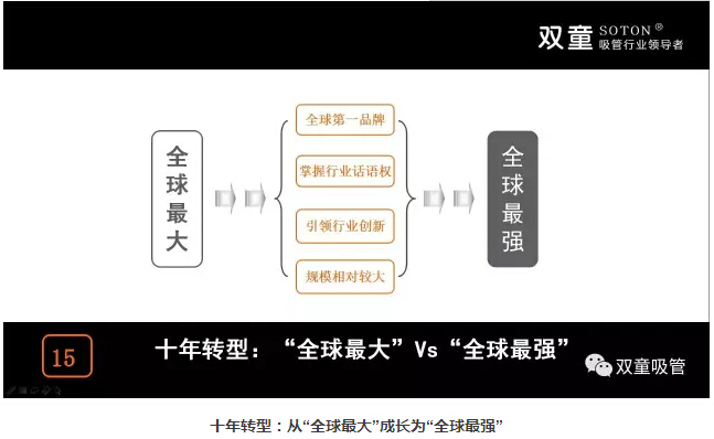 于是,“雙童”這些年通過(guò)不斷的轉型,實(shí)施小客戶(hù)原則,塑造品牌,制定行業(yè)標準,國家標準乃至于國際標準,牢牢抓住行業(yè)的話(huà)語(yǔ)權,從“全球最大”成長(cháng)為“全球最強”。