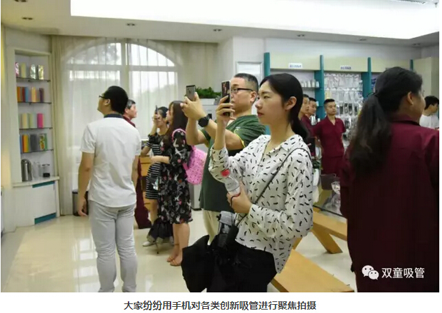 移步樣品房,看到如此新穎的吸管,大家紛紛拿著(zhù)手機相機對它們進(jìn)行聚焦攝影!妞也向大家介紹了一系列創(chuàng )新吸管,讓他們驚訝的是,原來(lái)一根小小的吸管也可以有這么多的功能可以開(kāi)發(fā)!