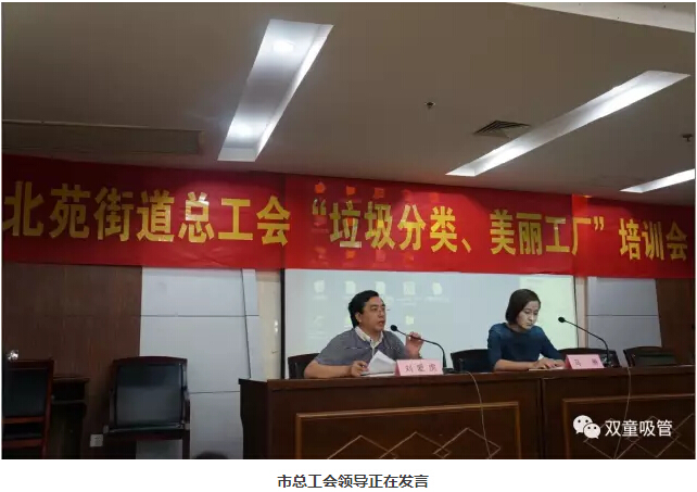 近期,北苑街道總工會(huì )舉辦了"垃圾分類(lèi)、美麗工廠(chǎng)"培訓會(huì )。市總工會(huì )黨組成員馬琳出席會(huì )議,所有基層工會(huì )干部們參加培訓,吸管妞也受邀參加在培訓會(huì )上和所有參會(huì )人員分享了“雙童”在垃圾分類(lèi)方面的經(jīng)驗!下面吸管妞就來(lái)介紹一下“雙童”的垃圾分類(lèi)吧!