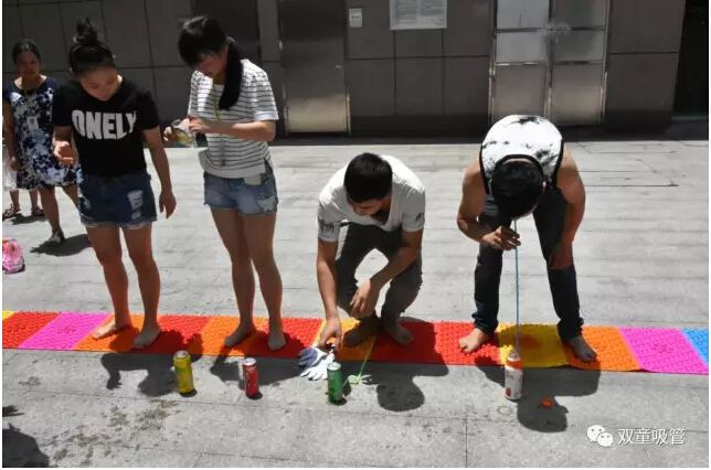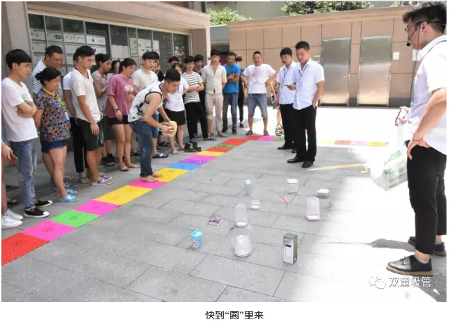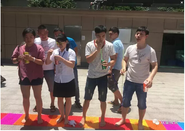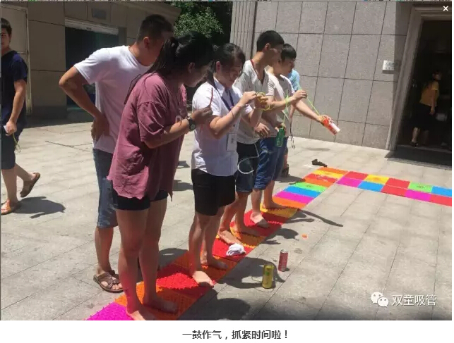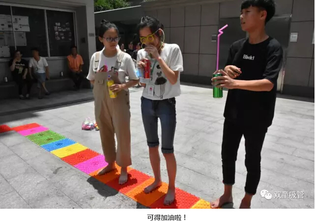 第二環(huán)節:用雙手走路,考驗大家協(xié)調能力的時(shí)候到了!各位同學(xué)配合的默契十足嘛!一個(gè)個(gè)爭分奪秒的在指壓板上健步如飛的!看來(lái),吸管妞小瞧大家了。