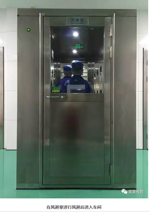 5、完成洗手消毒之后,要進(jìn)入風(fēng)淋室進(jìn)行風(fēng)淋除塵。